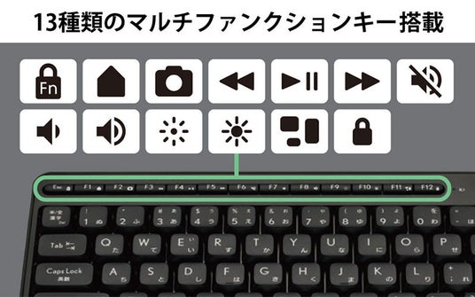 - メディアプレーヤーの起動、音量や明るさの調整などが専用キーを押すだけで実行できる、13種類のマルチファンクションキーを搭載しています。