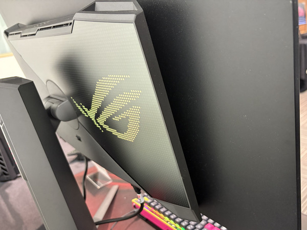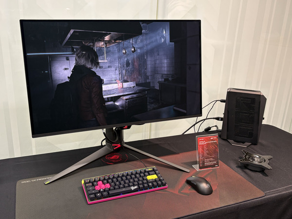 展示の目玉となったのは、27インチで5K(5120×2880)という圧倒的な高精細表示を実現した「ROG Strix 5K XG27JCG」だ。デュアルモード機能を搭載し、用途に応じて「5K/180Hz」の高精細表示と「QHD/330Hz」の高フレームレート表示を切り替えできる。Fast IPSパネルを採用し、0.3ms(GTG)の高速応答に加え、VESA DisplayHDR 600およびDCI-P3 97%の広色域に対応している。