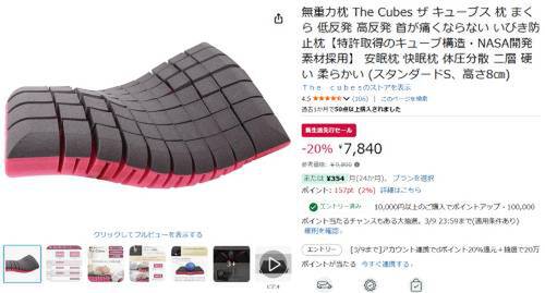 無重力枕「The Cubes(ザ・キューブス)」がAmazon新生活先行セール対象。参考価格9,800円のところ、20%オフの7,840円で販売中。