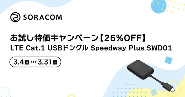 2026年3月4日(水)より「LTE Cat.1 USBドングル Speedway Plus SWD01お試し特価キャンペーン」を開始しました。