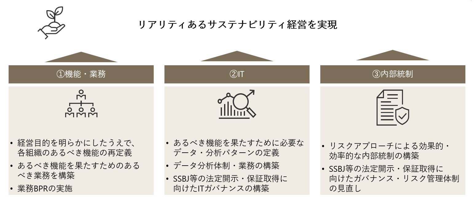 サステナビリティ経営の意思決定を支える、機能・業務・IT・内部統制の再設計を支援