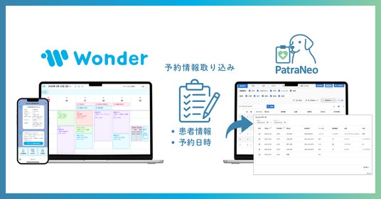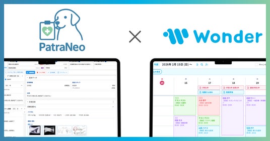 株式会社ワンダーテクノロジーズ(本社:東京都港区、代表取締役:松尾亮)が提供する動物病院向け業務改善プラットフォーム「Wonder(ワンダー)」は、ITF合同会社(本社:福岡県福岡市、代表社員:山之内 貴彦)が運営する動物病院向け電子カルテシステム『パトラNeo』とシステム連携し、協業を開始いたしました。本連携により、オンライン予約から電子カルテ・会計への登録をシームレスに繋ぎ、予約から会計までの一気通貫な運用を実現します。これにより、動物病院の業務改善を推進し、スタッフがより診療・看護業務に集中できる環境構築を支援いたします。