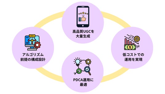 企業のSNSマーケティングにおける「制作負担」「コスト高騰」「成果の不透明さ」といった課題の解決を目的としています。