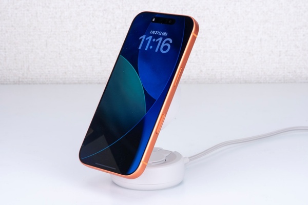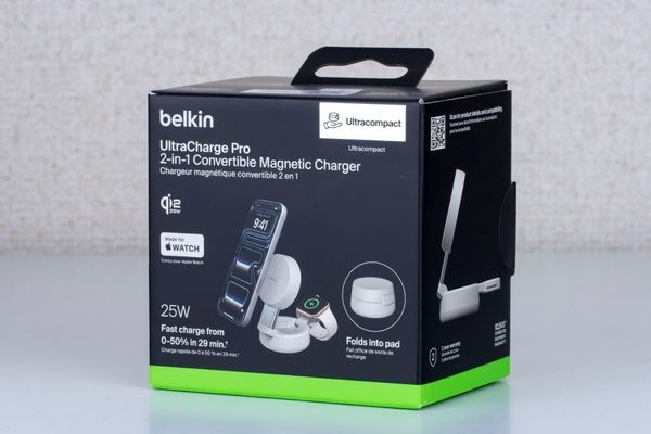 ベルキンでは、いち早くこの新規格に対応し、純正品と同等の充電パフォーマンスを実現。1月26日に発売された「UltraCharge Pro 2-in-1変形式マグネット充電器25W」は、最新規格Qi2 25W(Qi2.2)に対応し、最新のiPhoneとApple Watchを同時に高速充電できるモデルだ。今回はiPhone 17 Proを使って、本製品の実力をチェックする。