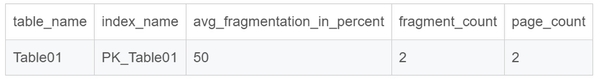 今回は、断片化の状態を確認する際に例に挙げた Table01テーブルの PK_Table01 インデックスの断片化解消を試みます。
