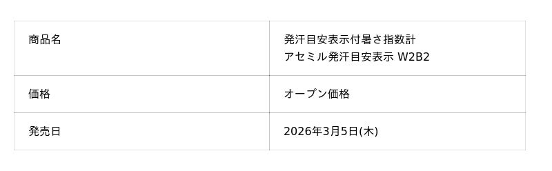 サラヤ株式会社(本社:大阪/代表取締役社長:更家悠介)は、WBGT(暑さ指数)を「汗の量」に変換する発汗目安表示付暑さ指数計「アセミル発汗目安表示 W2B2」を2026年3月5日(木)に新発売することをお知らせいたします。