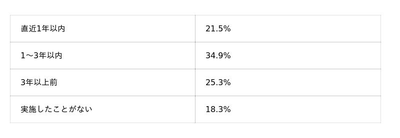 調査の結果、半数以上の企業が直近3年以内にホームページのリニューアルを実施していることが分かりました。一方で、3年以上更新していない企業や、リニューアルを実施していない企業も一定数存在しています。