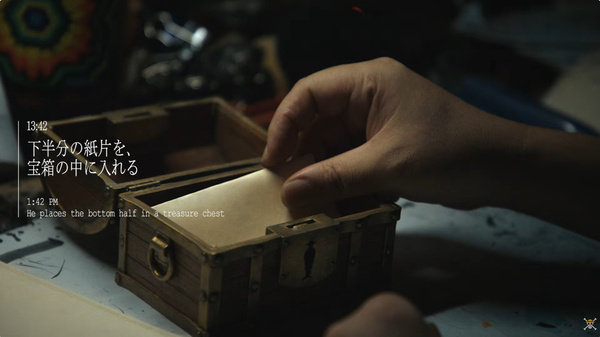 真実が書かれた紙は上下に破られ、上半分は3月4日の朝日新聞・読売新聞両朝刊にて原寸コピーを掲載。下半分の紙片は物語の完結まで、宝箱に入れて海底に沈められ、物語が完結を迎えたあと公開されるという。
