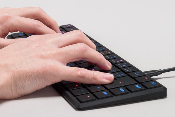 さらに、コンパクトキーボードにありがちな変則的な配列ではなく、幅広いユーザーが使いやすい「日本語JIS配列(72キー)」なのも、テキスト入力を主目的とするユーザーにとって非常に高い評価ポイント。