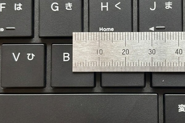 キーピッチは約19mmと自然なのでタッチタイプに支障はありません。ここで光るのが、13.7mmという圧倒的な薄さ。パームレストがなくても手の角度が自然なので手首に負担がかからず、長時間の入力作業も快適そのもの。場所を選ばずに入力効率を高められます。