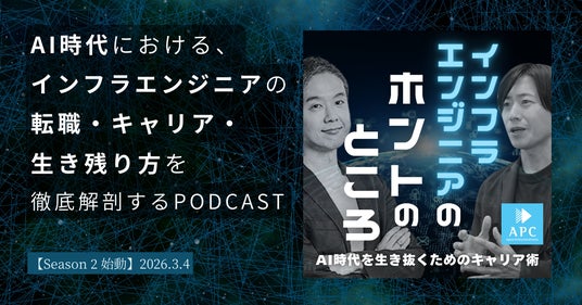 株式会社エーピーコミュニケーションズ(本社:東京都千代田区、代表取締役:内田武志、以下「当社」)は、2025年12月31日に一旦終了したPodcast番組『インフラエンジニアのホントのところ』を、2026年3月4日よりシーズン2として再開することをお知らせいたします。