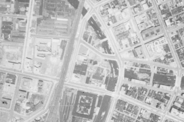 日本ビルヂングは区域南西側に建っていた大規模オフィスビルで、戦後日本を代表する大規模都市再開発の象徴的存在として建設されました。建設背景には、老朽化した市街地と下水道施設を抱えながらも、日本の玄関口として高度な都市機能が求められた常盤橋地区の課題がありました。