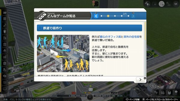 線路の敷き方から街の発展のさせ方まで、A9の遊び方の基本を一つ一つ学べる。