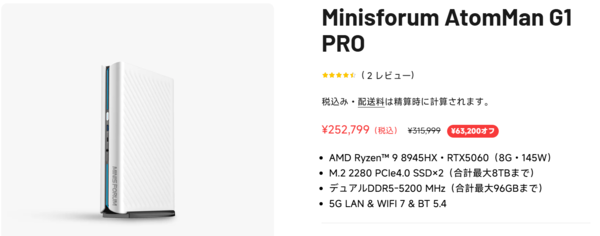 YouTubeで「MINISFORUM「AtomMan G1 Pro」」のレビュー動画を見る
