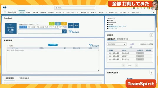 実際にログインし、出勤・休憩・退勤の打刻~修正申請までを体験。