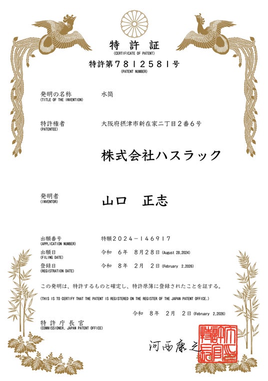 また、申請中であった本製品に関する技術がこのたび特許第7812581号として登録され、正式に特許取得となりました。