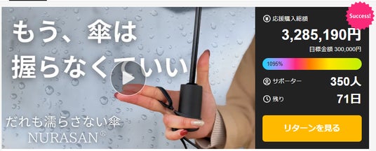 ありそうでなかった製品を通してワクワクと感動を届ける「NIGオンラインストア」を運営する合同会社NIG(本社:茨城県石岡市、代表:佐々木亮人)は、"だれも濡らさない逆折りたたみ傘"シリーズ最新作 「NURASAN-27Wss」 を、応援購入サービスMakuakeにて先行販売開始しました。