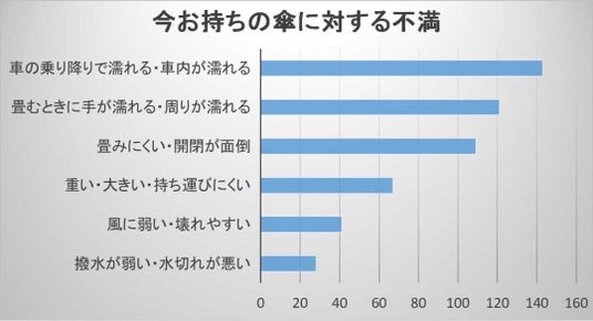 ■ 傘の不満1位は「車の乗り降りで濡れる」