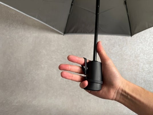 今回の新モデルでは、傘を握らなくても指に掛けて支えられる「指掛け機能」を新たに搭載しました。