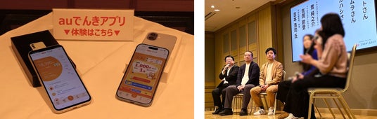 座談会パートでは、実際に「auでんき」をご利用いただいている3名のお客さまにご登壇いただき、トークセッションを実施しました。参加者からは、契約のきっかけやアプリを通じた生活の変化について、「機種変更時にショップで提案されたのがきっかけ。アプリで日・週・月ごとの使用量が数値で可視化されるので、自分が使用した電気量の把握・分析に活用できる。」「3日に1回は必ずガチャを回している。1,000円使うごとに1回回せるのが楽しみ。」「子供たちがガチャを回すのを楽しみにしており、寝る前にアプリを一緒に見ながらガチャを回して、『今日は電気を使いすぎたね』と家族のコミュニケーションツールになっている」とお話いただきました。具体的な利用体験を交えながらご回答いただき、お客さま視点でのサービス利用の実態がうかがえました。