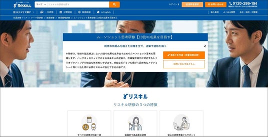 株式会社リスキルは、「もっと研修を」をコンセプトに、企業の課題解決を支援するビジネス研修を提供しています。ムーンショット思考研修をはじめ、階層別やテーマ別など多岐にわたるカリキュラムを展開しています。ビジネス研修が料金一律という明瞭な価格体系を採用しています。事前の教材準備から当日の運用まで事務局がフルサポートを行うことで、各企業が研修を実施しやすい環境を整えています。