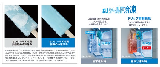 ■冷凍室内の温度変化を抑え、長期間おいしさを保つAQUAの特許技術(※5)「おいシールド冷凍」