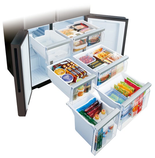 -18℃で保存可能な「フォースター」の性能を持つ大容量冷凍室。扉を開くと合計6つのボックスに分かれており、食品・食材・容器の大きさに合わせてたっぷり収納することができます。