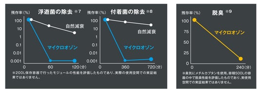 ※9:臭気にメチルカプタンを使用。容積500Lの容器の中で脱臭性能を評価したものであり、実使用空間での実証結果ではありません。