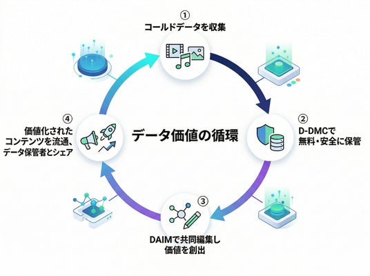 しかしその多くは、活用されない「コールドデータ」、保管コストのみを生む素材データ、大手クラウド企業への集中管理という構造的課題を抱えています。