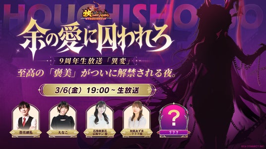 『放置少女』に“異変”発生?!9周年記念生放送が3月6日に配信決定!豪華ゲスト出演、純金製豪華賞品が当たる周年特典、史上最大級の周年特典が解禁!X企画も一挙公開!