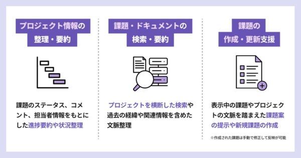 Backlog AIアシスタントの主な機能は以下の3点だ。