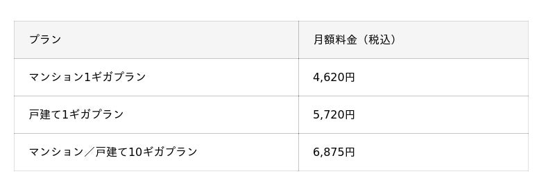 ※10ギガプランは、月額基本料金とは別に専用ルーター月額550円(税込)のレンタルが必要になります。