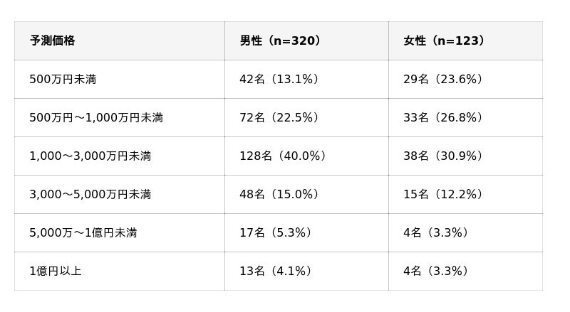 男性24.4%・女性18.7%が「3,000万円以上」と予測、性別を問わず強気な見方が広がる