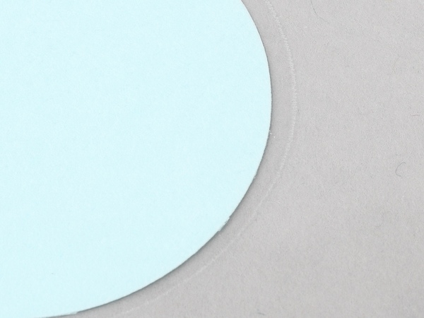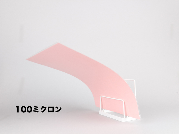 これなら150ミクロンだけでいいなと感じてしまいますが、厚みがあるということは、柔軟性においては見劣りするということ。少し厚めな画用紙の端を見ると、100ミクロンでは隙間が1ミリもありませんが、150ミクロンでは2ミリほど開いていました。