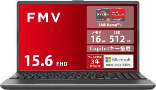CPUはAMD Ryzen 5 7430U(6コア/12スレッド)。メモリは16GB(8GB×2)、ストレージは約512GBのSSDとなる。ディスプレイは15.6型フルHD(1920×1080)。