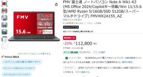 【Amazon新生活セール】FMV ノートPC「Note A WA1-K2(FMVWK2A155_AZ)」をチェック!