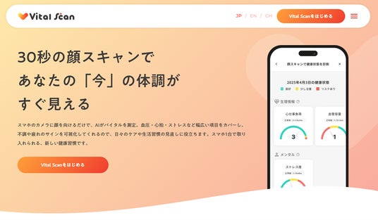スマートフォンで30秒の顔スキャン。AIが健康状態を可視化する「Vital Scan」一般ユーザー向けサービスを開始
