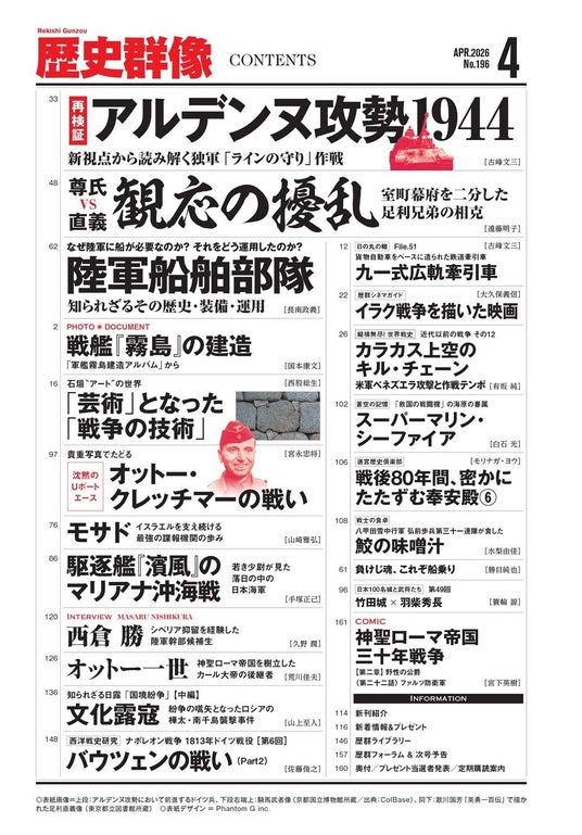「再検証 アルデンヌ攻勢1944」「尊氏vs直義 観応の擾乱」「陸軍船舶部隊」ほか、戦史ファン、歴史ファン必読記事満載の「歴史群像」4月号が発売!