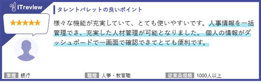 ITreviewの「タレントマネジメント」部門では、『開発スピードの速さ』や『機能性の自由度』の点で高い評価を受けています。