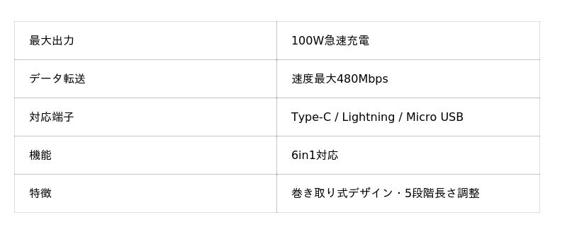複数のケーブルを持ち歩く必要がなく、よりスマートで効率的な充電環境を実現します。