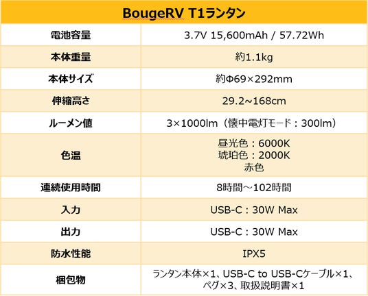 ■「BougeRV T1ランタン」について