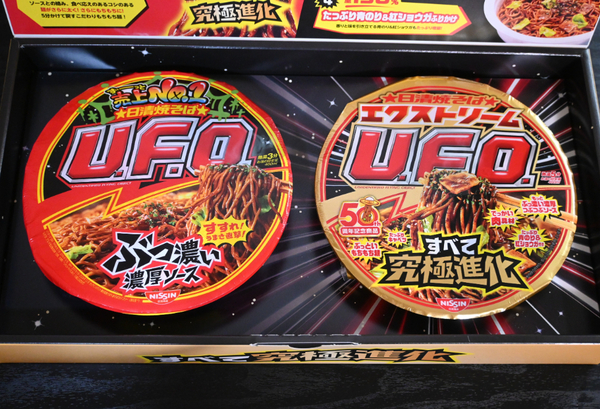 カップ焼そばでおなじみの「日清焼そばU.F.O.」の50周年を記念して、日清食品が3月2日に発売した限定商品。おなじみのU.F.O.を“究極進化”させたという一品です。