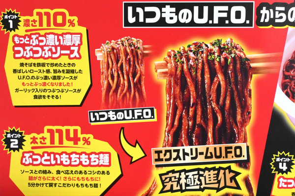 今日は名前からして気になる、エクストリームな商品をご紹介。その名も「日清焼そばエクストリームU.F.O.」です。