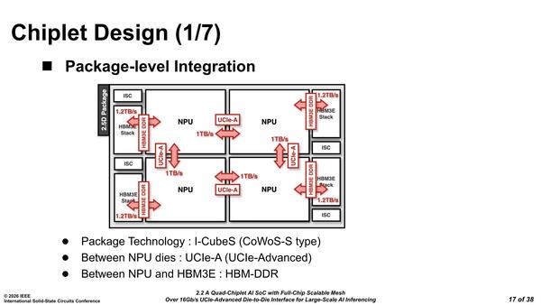 この表現だと、チップレット内部は専用配線が用意されており、ただしチップレットをまたぐところだけはUCIeを通るメッシュの信号に混載されるように見えるが、あるいはメッシュそのものにこれも別プロトコルとして重ねられている可能性もある