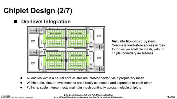 load-storeは4つのチップレットどこに対してもシームレスに行なえるとは書いてあるが、Load/Storeユニットが直接別のニューラルコアのスクラッチパッドにアクセスできるかどうかはまた別の話である。それが同一ダイ内か、別ダイかは問わない