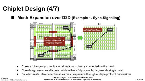 メッシュの制御は、それぞれのチップレット内のSyncマネージャーが相互接続して調整する形になっているという話であった。