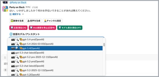 Slack上で複数の生成AIを業務活用するアプリ「Party on Slack」が機能強化アップデートを連続実施【GPT-5.4含む最新AIモデル群に迅速対応】