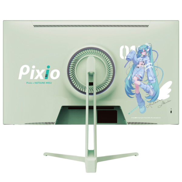 初音ミクを象徴するミントグリーンを筐体カラーに採用し、寝田ルネ氏の描き下ろしイラストが背面を飾る本製品は、Pixioブランドのロゴも初音ミクのテーマカラーを取り入れた特別仕様だ。高精細なWQHD解像度のFast IPSパネルに、180Hzのリフレッシュレートと1msの応答速度を誇り、ゲームプレイはもちろんクリエイティブ作業にも最適な性能を備えている。
