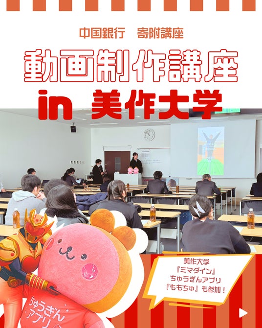 中国銀行(岡山市 頭取 加藤 貞則)では、美作大学と連携し、寄付講座「動画制作講座&コンテスト」を開催しました。