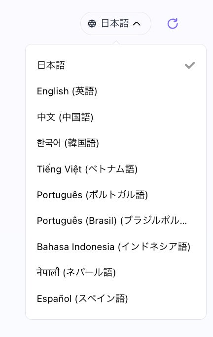 2. 10言語以上のリアルタイム多言語会話 -- 通訳なしで即応答